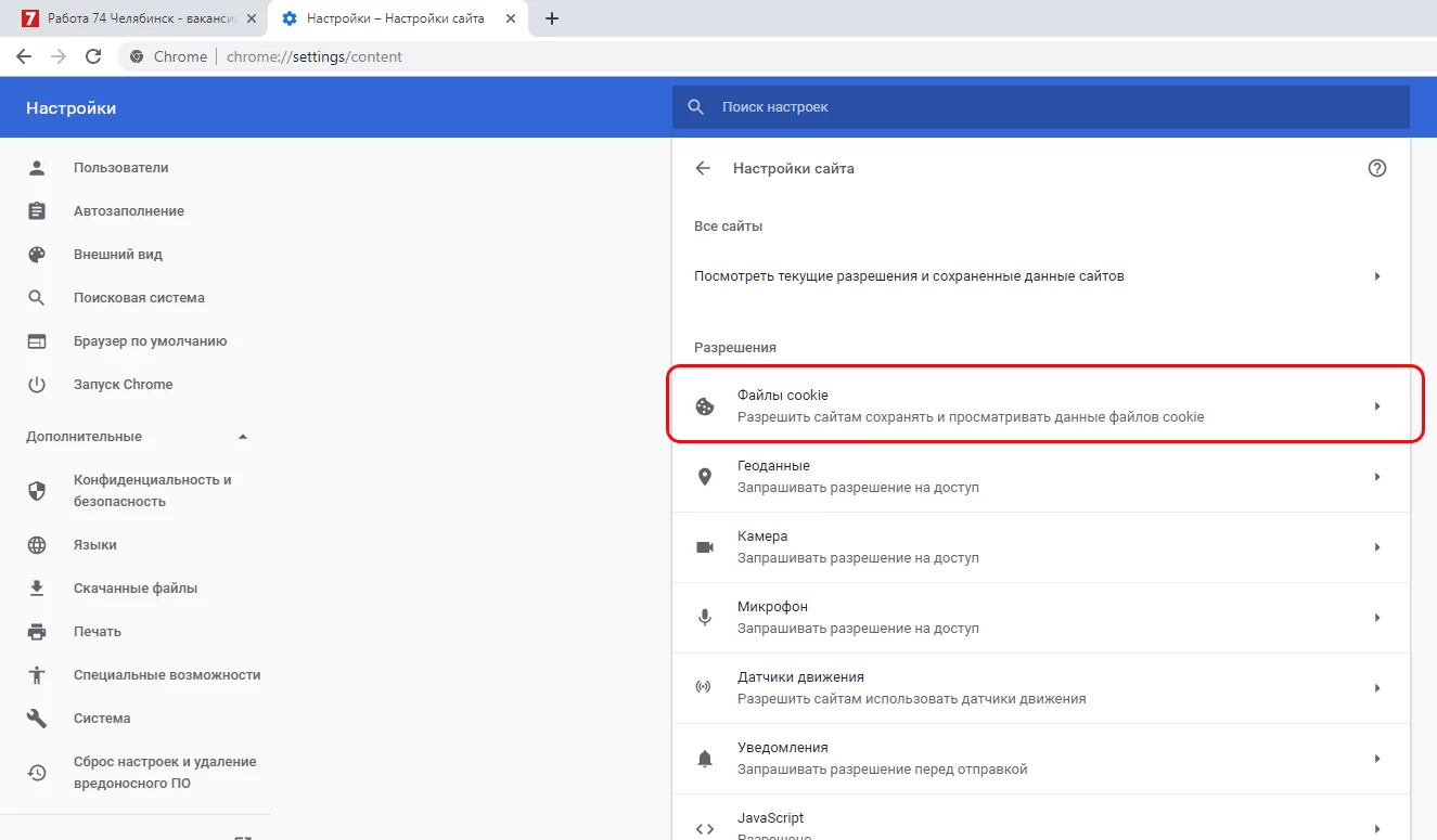 6. В появившемся в пункте "Все файлы cookie и данные сайта" в окне в поисковой строке укажите ключевые слова Rabota7;