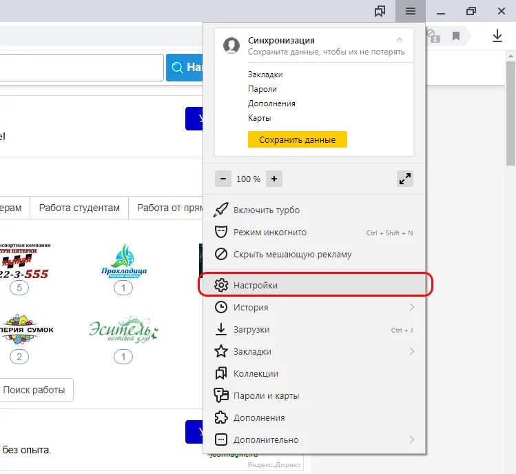 1. Откройте меню Настройка браузера Yandex (три горизонтальные полоски в верхнем правом углу экрана);